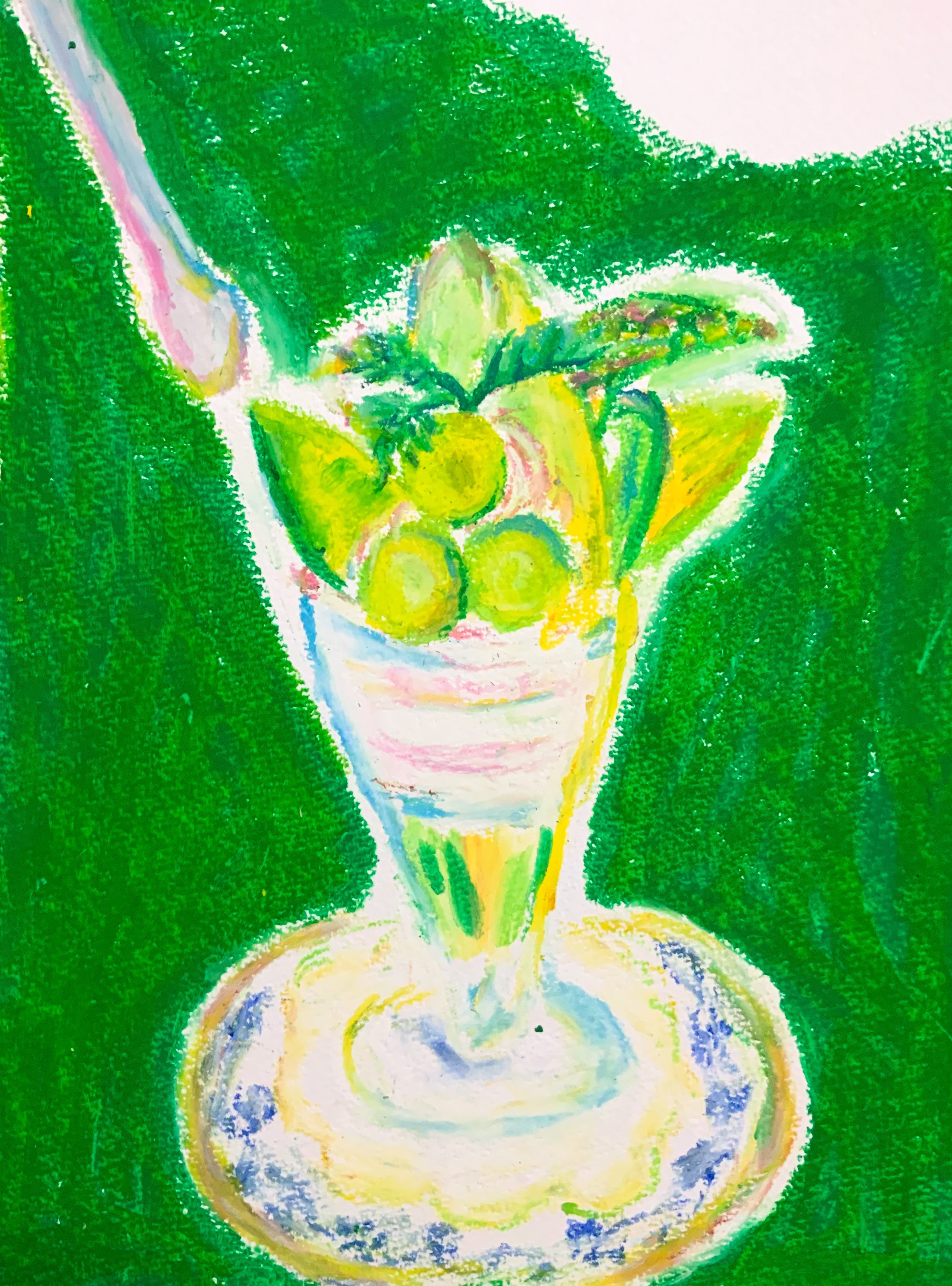 私は杏仁とキウイのパフェと、季節のフルーツのソーダ、マサラチャイを頂きました。どれも、手作りの温かさを感じる味。
